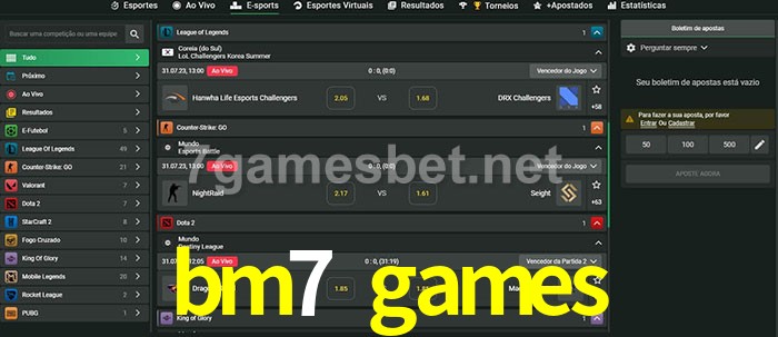 O bm7 games oferece uma grande seleção de opções de apostas em e-sports com probabilidades competitivas